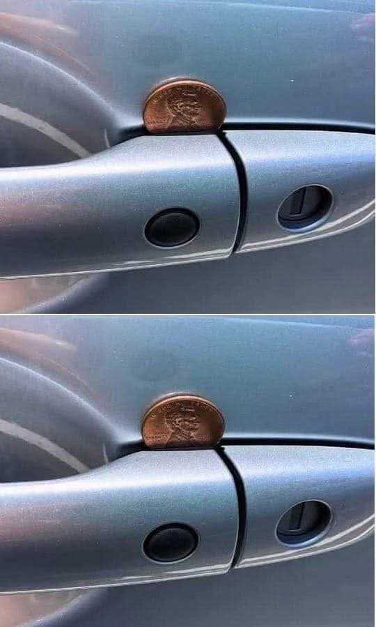 Car thieves don’t always operate in a hurry. Some take their time and observe their target before making a move. If a thief places a penny in your door handle and watches from a distance, they may be waiting for the perfect moment to strike.